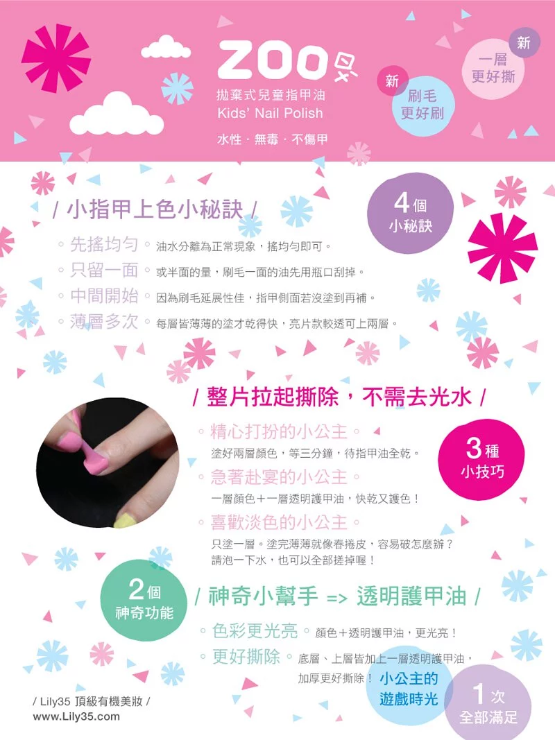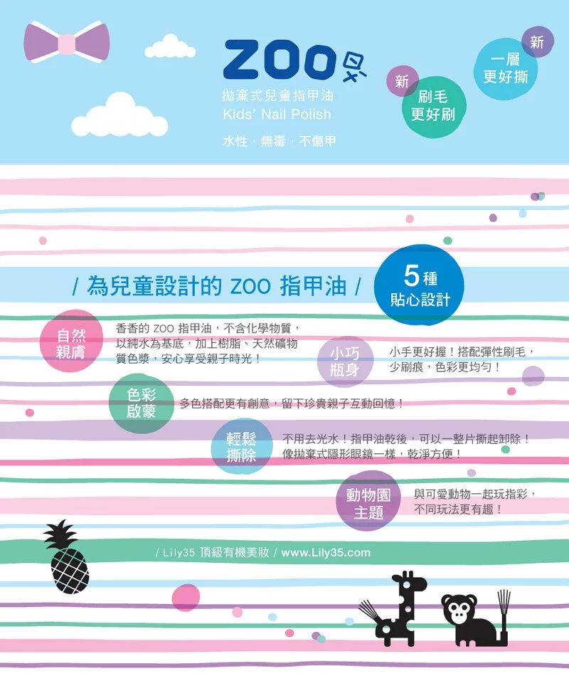 所以每瓶ZOO指甲油,都有可愛的彩色外盒,好像穿上了專屬小洋裝,